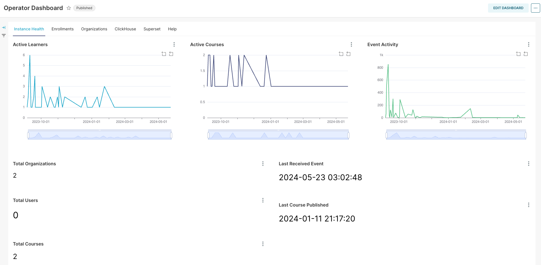 Open edX has introduced Aspects Reports in the Redwood release, a comprehensive analytics system replacing the previously used Insights. This system offers real-time data on course and instance performance through interactive dashboards and charts. Key features include: